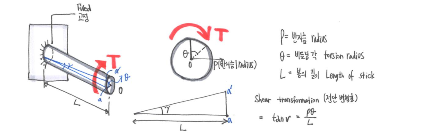 비틀림력은 물체에 모멘트가 가해졌을 때 나타나는 변형 상태이다. 이 비틀림으로 인해서 모멘트의 반지름 방향과 직각 방향으로 부재는 전단 응력을 낸다. ² 일상적인 예시로 우리가 빨리를 짤 때 발생하는 힘이 비틀림인데, 양쪽에서 서로 다른 방향으로 물체가 돌아간다. 이때 빨래의 단면은 서로 다른 방향의 힘을 받으므로 전단력이 발생하는 것이다.